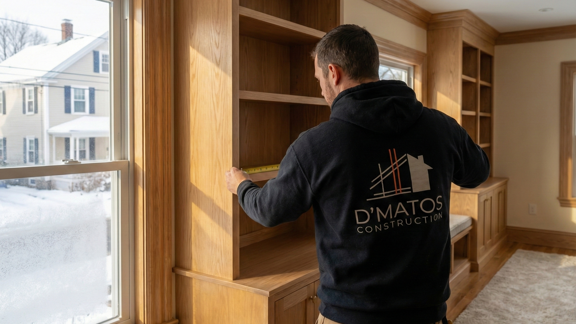 D’Matos Construction designs built ins, shelving, and functional woodwork that improve organization and warmth while enhancing aesthetics.